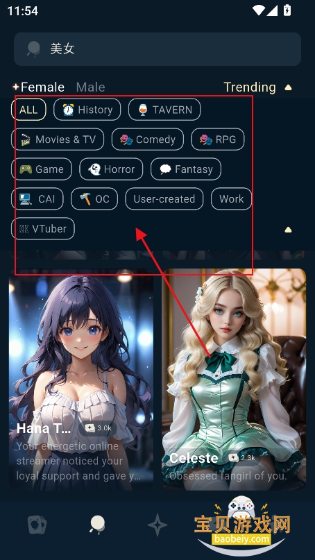 1、进入角色广场,可以筛选喜欢的聊天角色