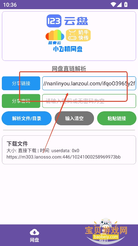 1、进入首页,文本框输入网盘地址,基本支持多有网盘,直接复制地址进入即可
