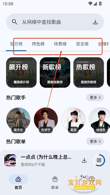 2、切换不同的榜单可以解锁更多热门音乐内容
