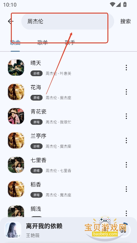 5、还可以在搜索框输入关键词,精准搜索歌手,歌单,以及歌曲等