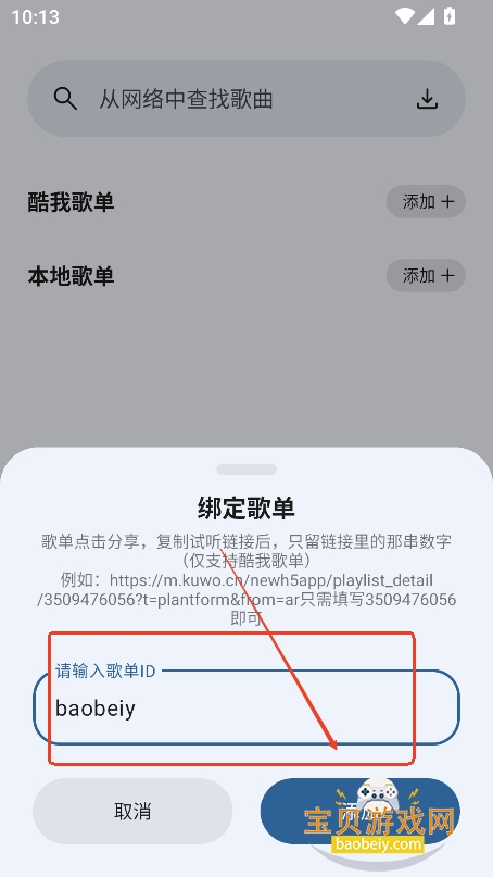 2、例如从酷我歌单导入,选择id账号,点击确定即可