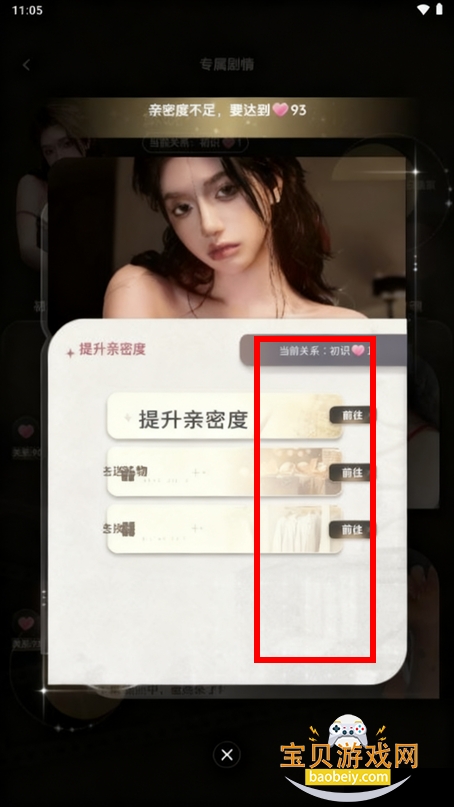 3、如果亲密度达到数值,可以直接探索下一剧情,如若没有,点击前往,去提升亲密度