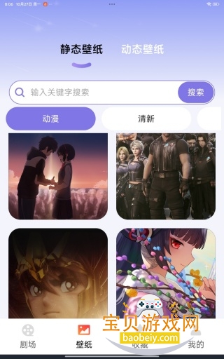 3、点击壁纸栏目,提供静态和动态壁纸,输入关键字即可开启搜索。