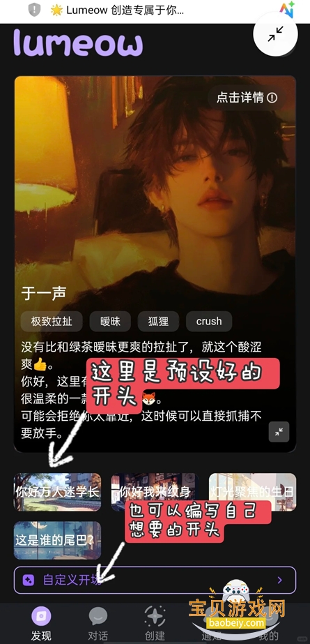 角色陪伴感强,情感连接深:无论是预设OC角色还是自定义角色,回应均贴合性格设定,且会在互动中“记住”用户的偏好、故事中的关键信息,后续互动与故事创作中会呼应相关内容,让角色陪伴更有“温度”,情感连接更紧密。