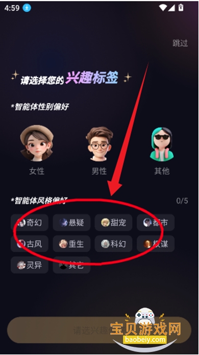 1、进入首页,首选筛选喜欢的虚拟角色,提供超多标签,类型