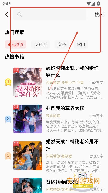 6、或者如果你有喜欢的书籍,可以直接搜索框输入作品名,或者作者,点击精准检索