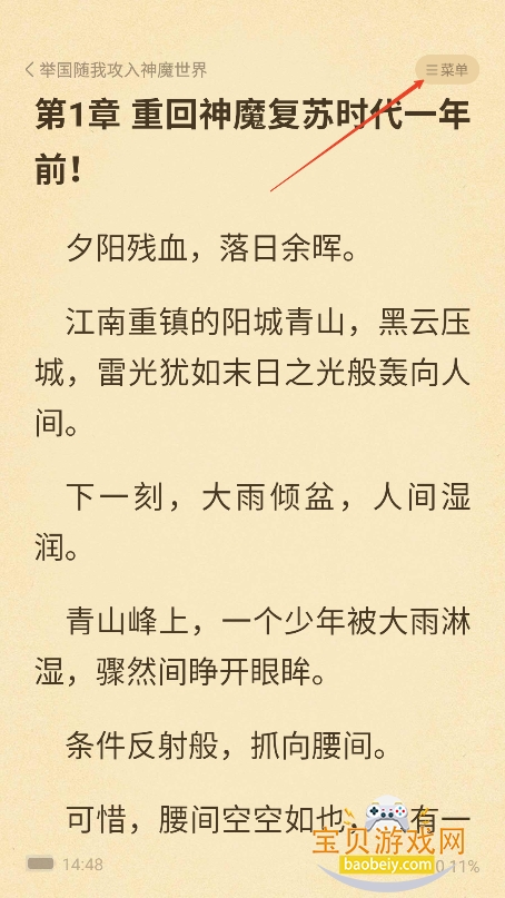 1、进入喜欢的小说界面,点击开始阅读