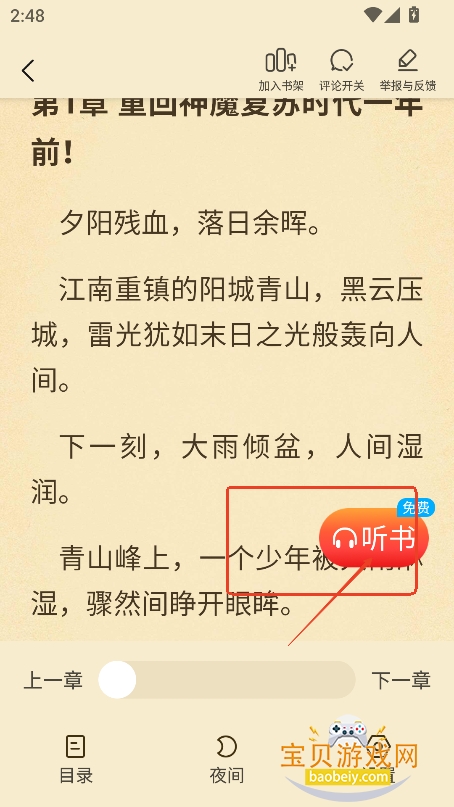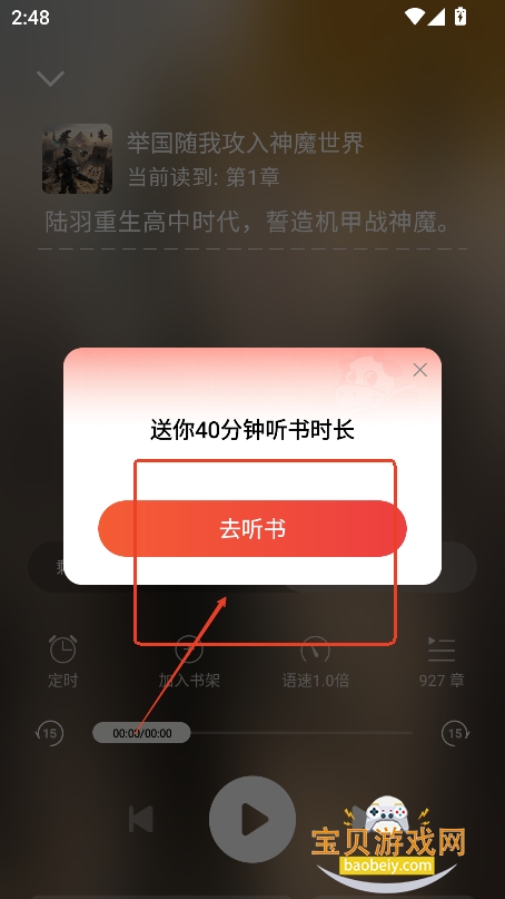 3、点击听书,就可以开始听书了