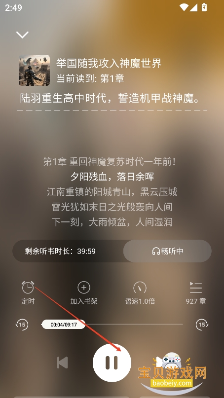 5、点击开始按钮,就可以通过音频的方式进行听书体验了