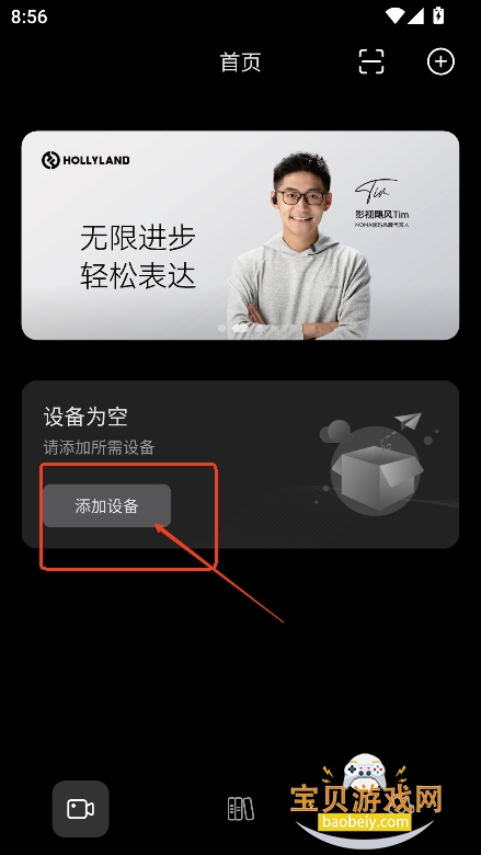 1、进入首页,点击添加设备