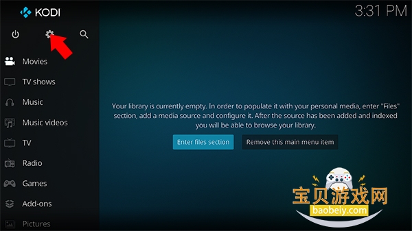 1、首先在本站下载并安装Kodi播放器,打开应用后来到程序主界面,我们点击上方的设置按钮
