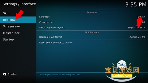 4、接着点击左侧的Regional选项,将其中的Language选项改为Chinese(Simple)