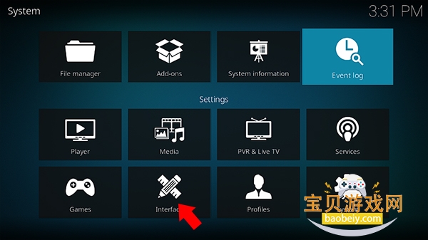 2、来到设置界面后,我们点击Interface选项图标