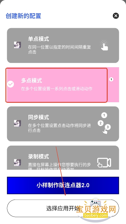 1、在宝贝游戏网下载安装小样制作版连点器手机版,进入主页面