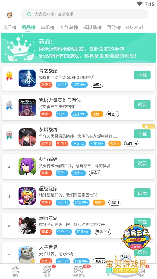 平台还具备了精品游戏推荐功能。每一天,GG大玩家都会根据玩家的兴趣和游戏表现,推出精选的游戏推荐,让玩家能够轻松找到最符合自己需求的游戏。这些游戏都是经过平台精心筛选的,保证了游戏质量和玩法的丰富性。
