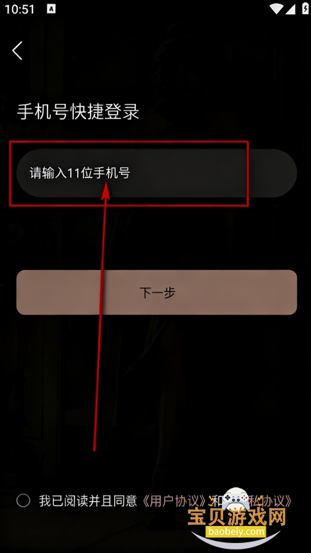 3、然后输入手机号进行验证,点击下一步即可,新手机号自动注册哦