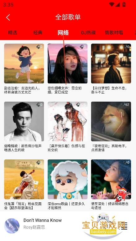 5、例如进入网络歌单,选择喜欢的歌单进入