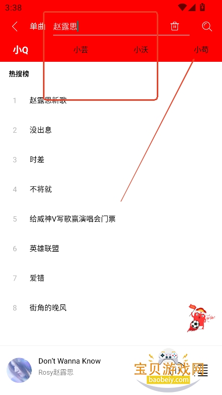 8、或者返回到首页界面,点击搜索框,输入歌手名,歌曲名,或者专辑等,精准检索歌曲