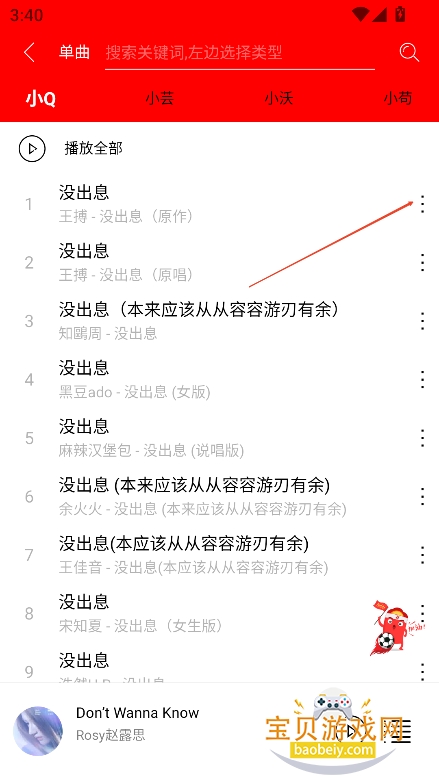 1、进入歌单界面,选定喜欢的音乐,点击右侧三点