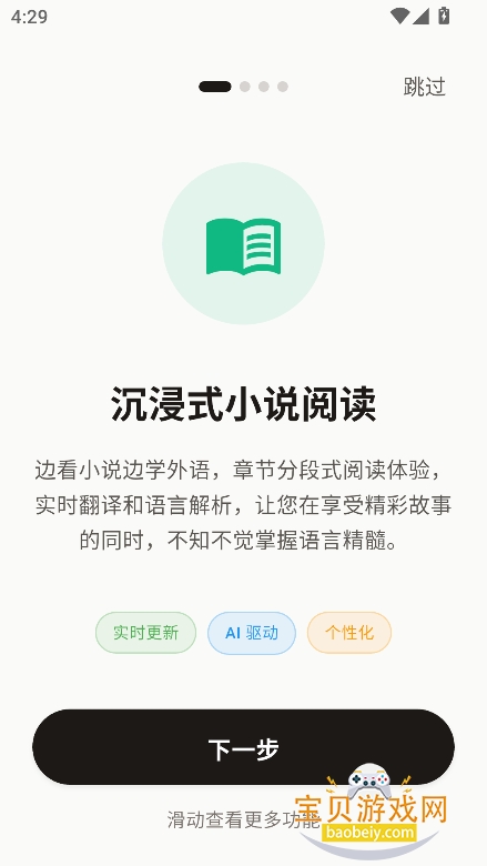 学习趣味性强:通过阅读小说的方式学习外语,摆脱传统学习的枯燥感,提升用户学习积极性与持续性。