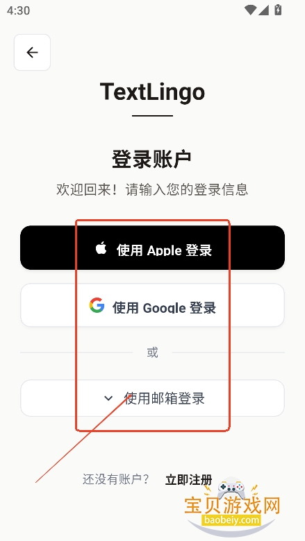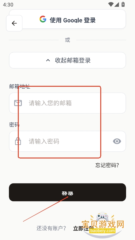2、进入登录界面,支持谷歌,邮箱等方式进行登录,任意选择一种登录方式