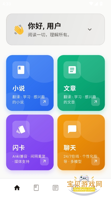 “阅读+学习”一体化设计:区别于单纯的翻译工具或外语学习软件,将两者深度融合,让阅读成为学习的载体,实现“输入即学习”。