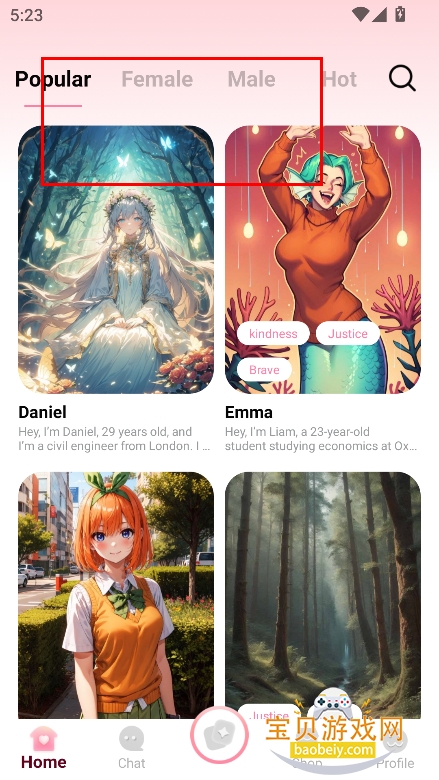 1、进入首页,角色广场可以根据角色标签筛选角色