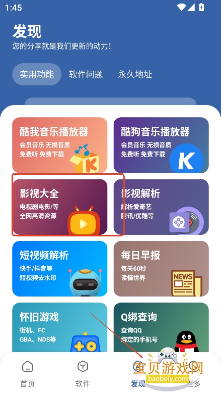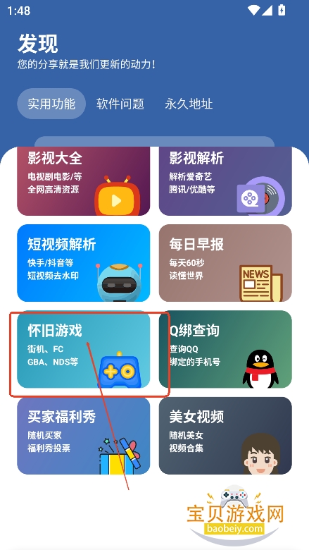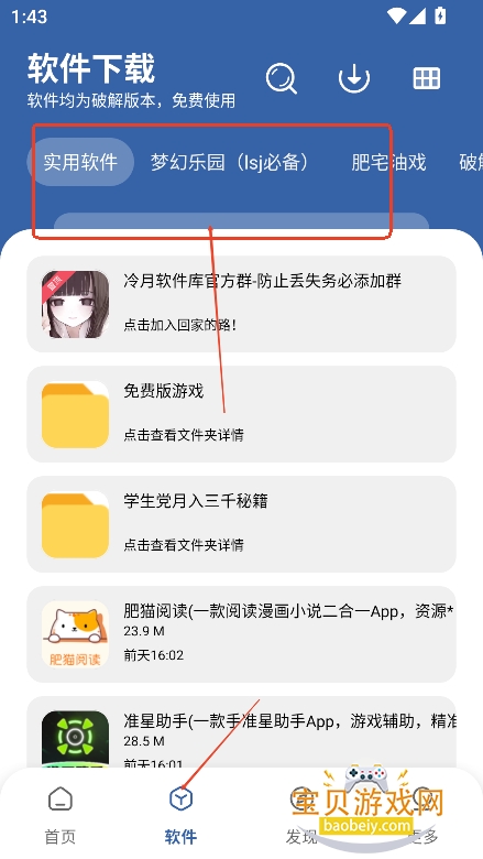 1、进入“软件”板块,提供大量游戏,软件,实用工具等,可以根据类型进行筛选