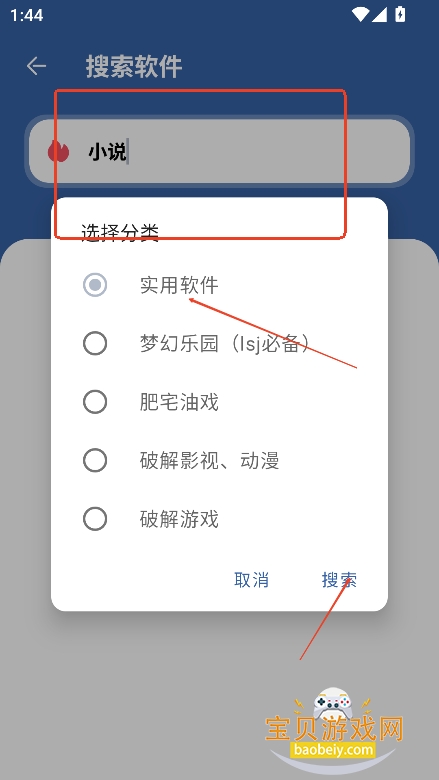 3、或者搜索框输入关键词,定位软件类型,点击搜索