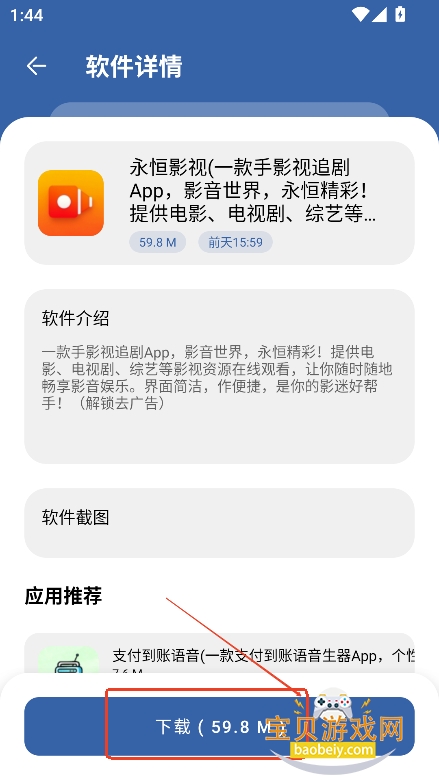 4、根据搜索结果,进入喜欢的软件界面,点击下方下载