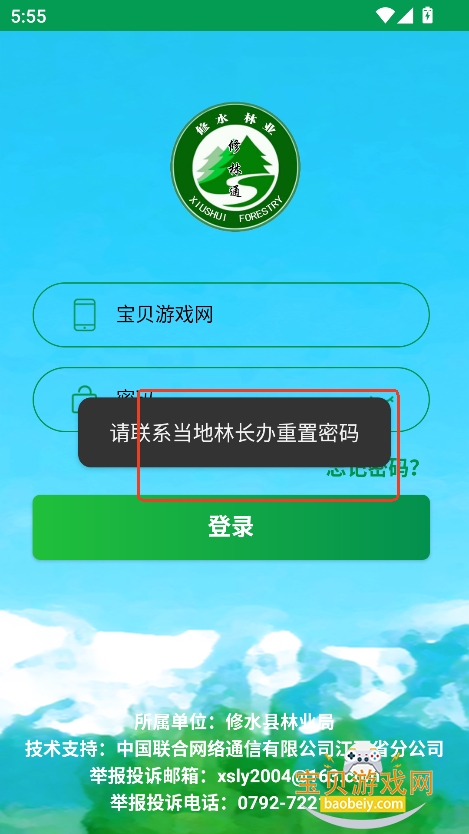 2、如若忘记账号,点击忘记密码,或者直接联系本地林业局进行修改