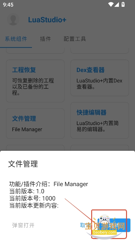 1、在宝贝游戏网下载安装LuaStudio+手机版,点击确定进入下一步