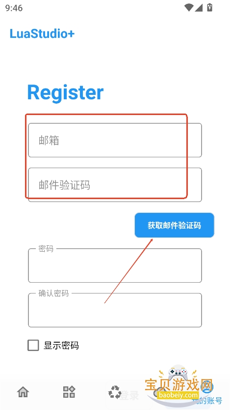 2、或者点击注册,进入注册界面,输入邮箱,点击验证就可以注册成功了