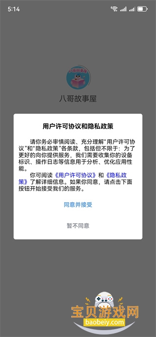 1、阅读用户许可协议和隐私政策之后点击同意并接受;