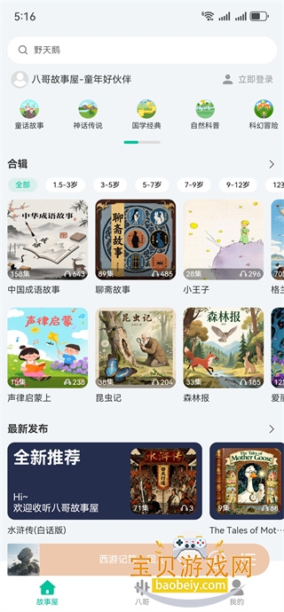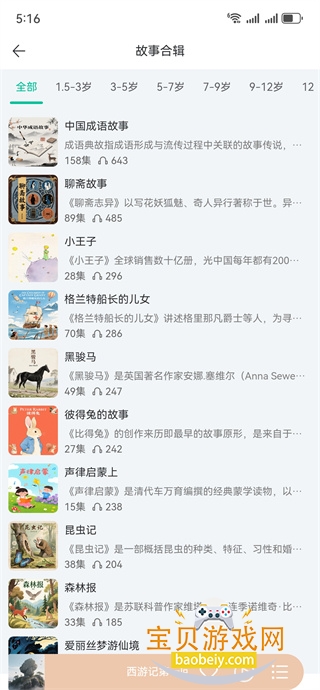 3、提供故事合辑,适合不同年龄段的孩子的故事都会分级展示;