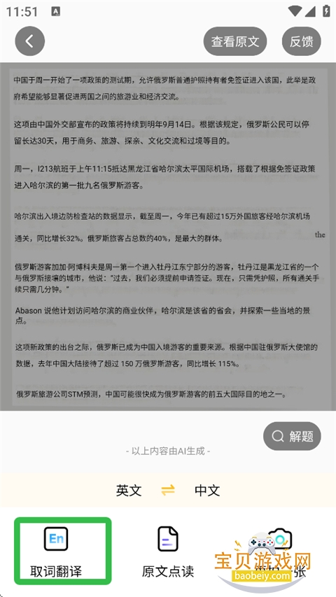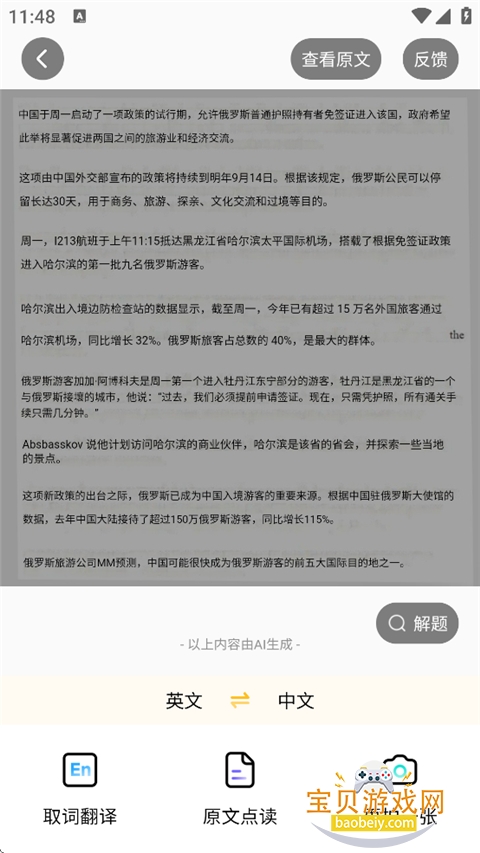 2、用户可以从相册中上传需要翻译的文本图片,也可点击下方拍照按钮现拍。