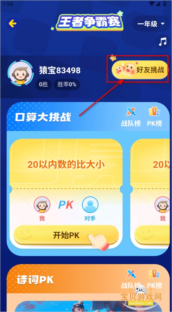 4、输入好友的口令就可以开始挑战了,也可以我们自己挑战之后给好友,让他来挑战我们