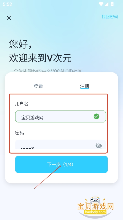 3、或者切换到注册板块,输入基本信息,点击下一步