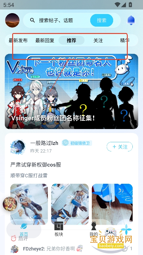 2、或者点击上方搜索框,输入关键词,精准搜索帖子