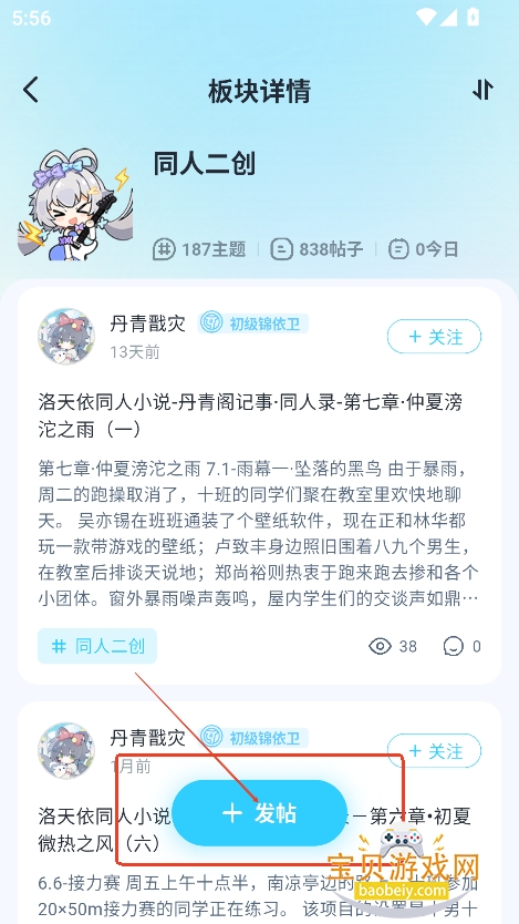 7、进入该板块,可以查看帖子,与其他同好聊天,还能够点击发帖,发布帖子