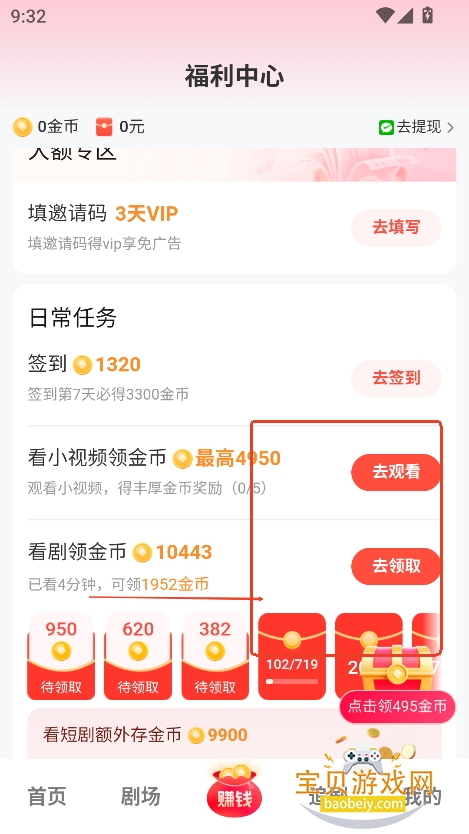 2、浏览到下方,还有观看任务,可以点击去完成,完成后可以领取相应奖励