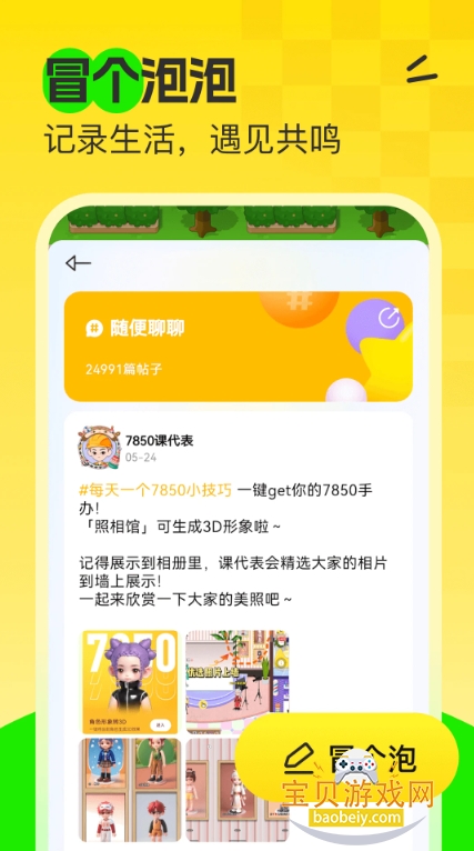用户们还可以在随便聊聊里面发布“冒个泡”,分享自己的生活,结交更多志同道合的朋友