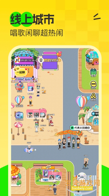 多元社交场景内容:内置线上虚拟城市地图,包含商业街、标志性建筑、乐园等丰富场景,用户可自由探索打卡;场景化语音聊天为核心互动形式,不同场景对应不同社交主题(如乐园场景主打游戏互动、商业街侧重闲聊交友),让相遇更具趣味性。