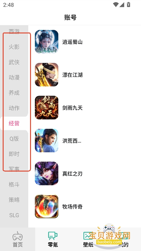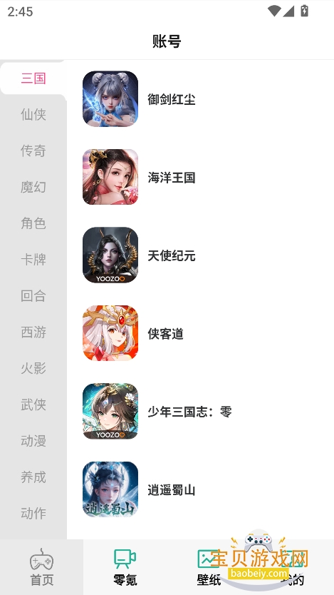1、进入首页,可以根据游戏类型,题材等筛选游戏账号