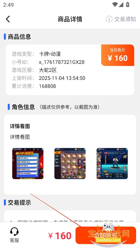 3、选择合适的价格进入主页,点击右下角立即购买,就可以进行账号交易