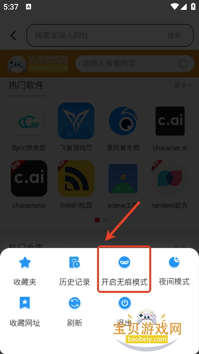 用户们可以点击菜单栏的“开启无痕模式”,使用无痕浏览功能,体验更加安全快速的浏览环境