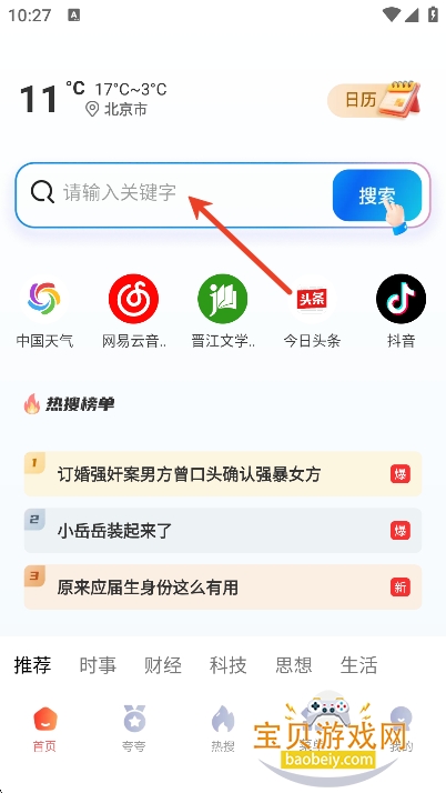 打开app,用户们可以在首页搜索栏搜索自己需要的资源或者喜欢浏览的内容