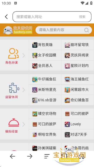 用户们也可以查找自己喜欢的网站,例如宝贝游戏网