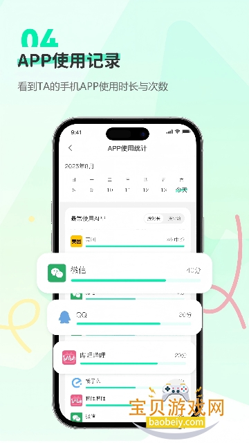 展示了详细的手机使用报告,可以清晰查看对方手机app的使用情况,了解屏幕使用时长。
