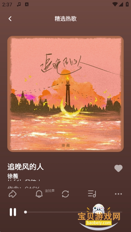 个性化音乐管理:提供歌曲收藏、自建歌单功能,用户可按喜好分类整理音乐,支持循环播放设置,同时支持将喜爱歌曲设为铃声,满足个性化使用需求。